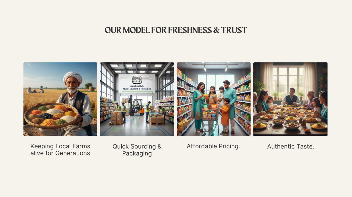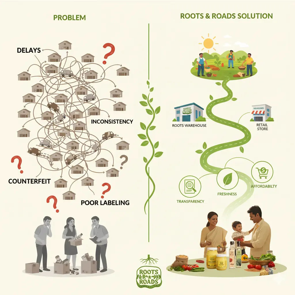 Why Roots & Roads exists → “Food tastes best fresh. Our mission is to cut down storage & processing delays.”